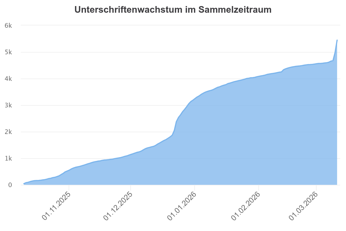 Momentan ist der starke Anstieg an Mitzeichnungen zuende. Wir sind daher für jedes Teilen und verbreiten dankbar!